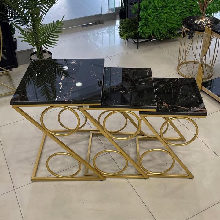Multi-Pillared Nesting Table Set Black – Set of 3